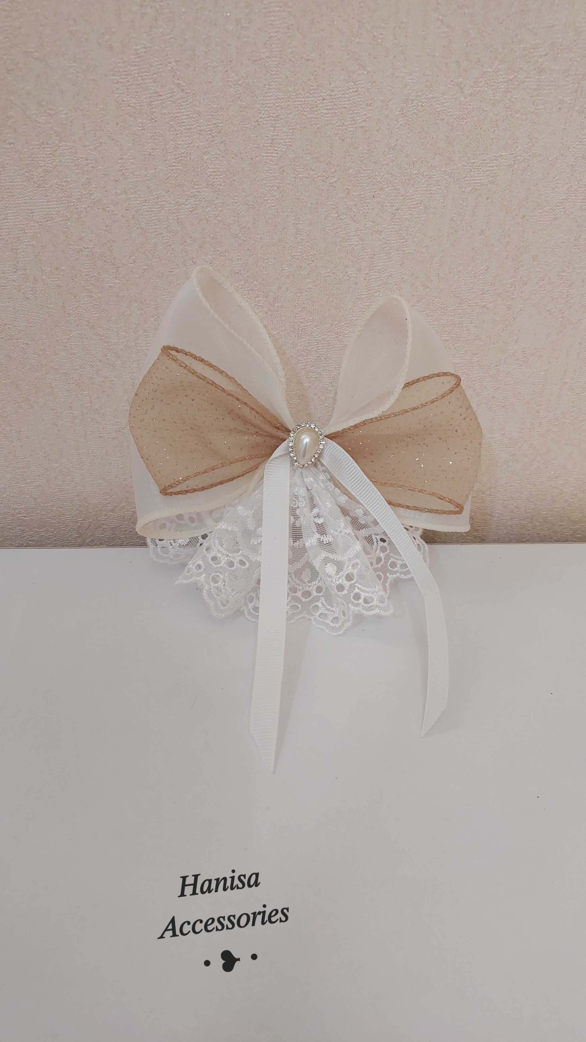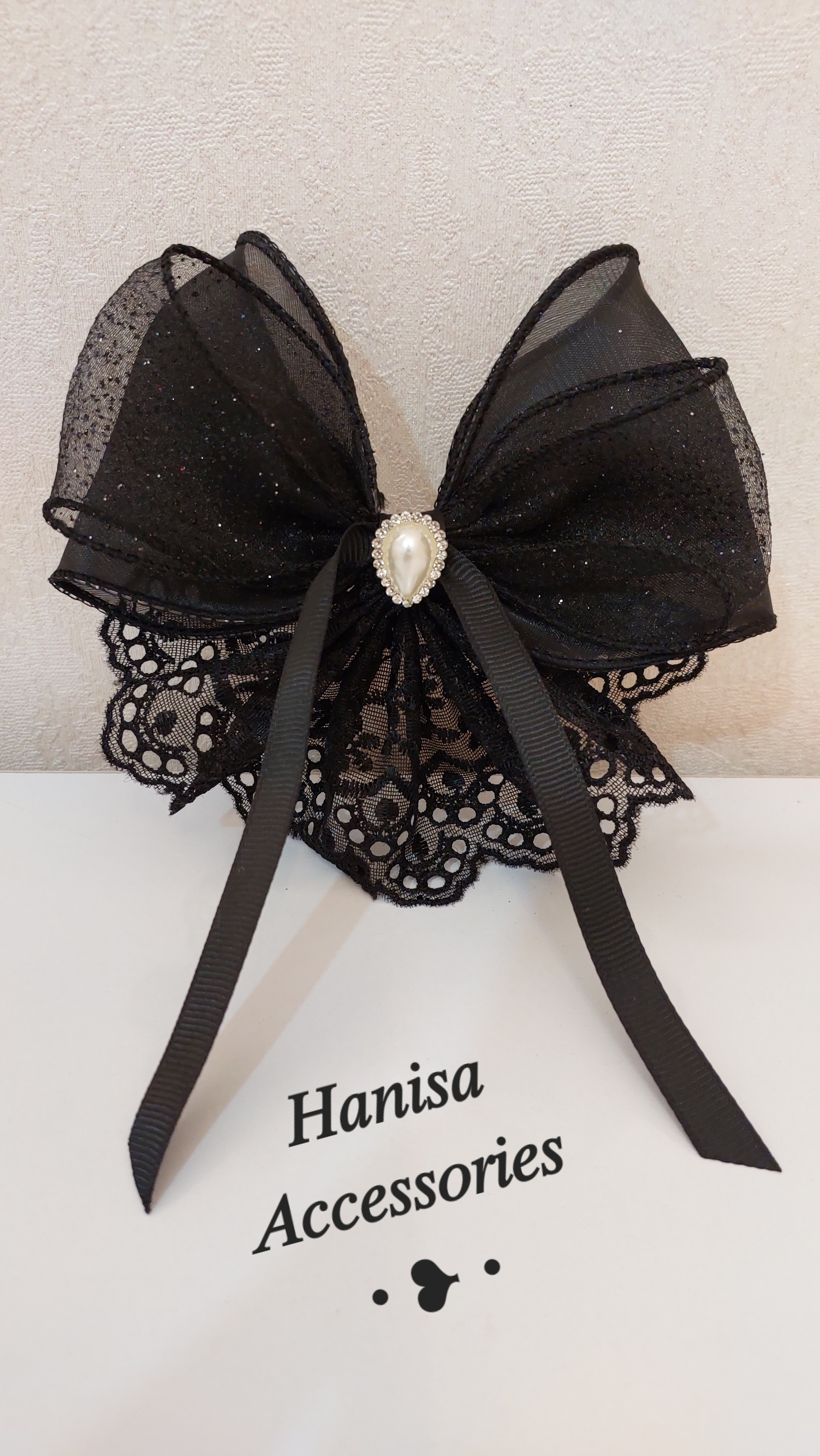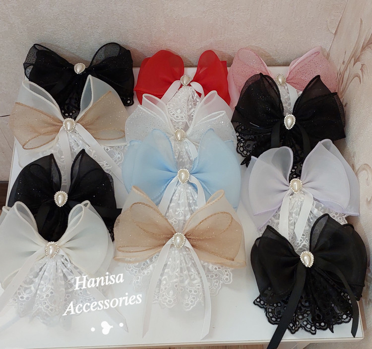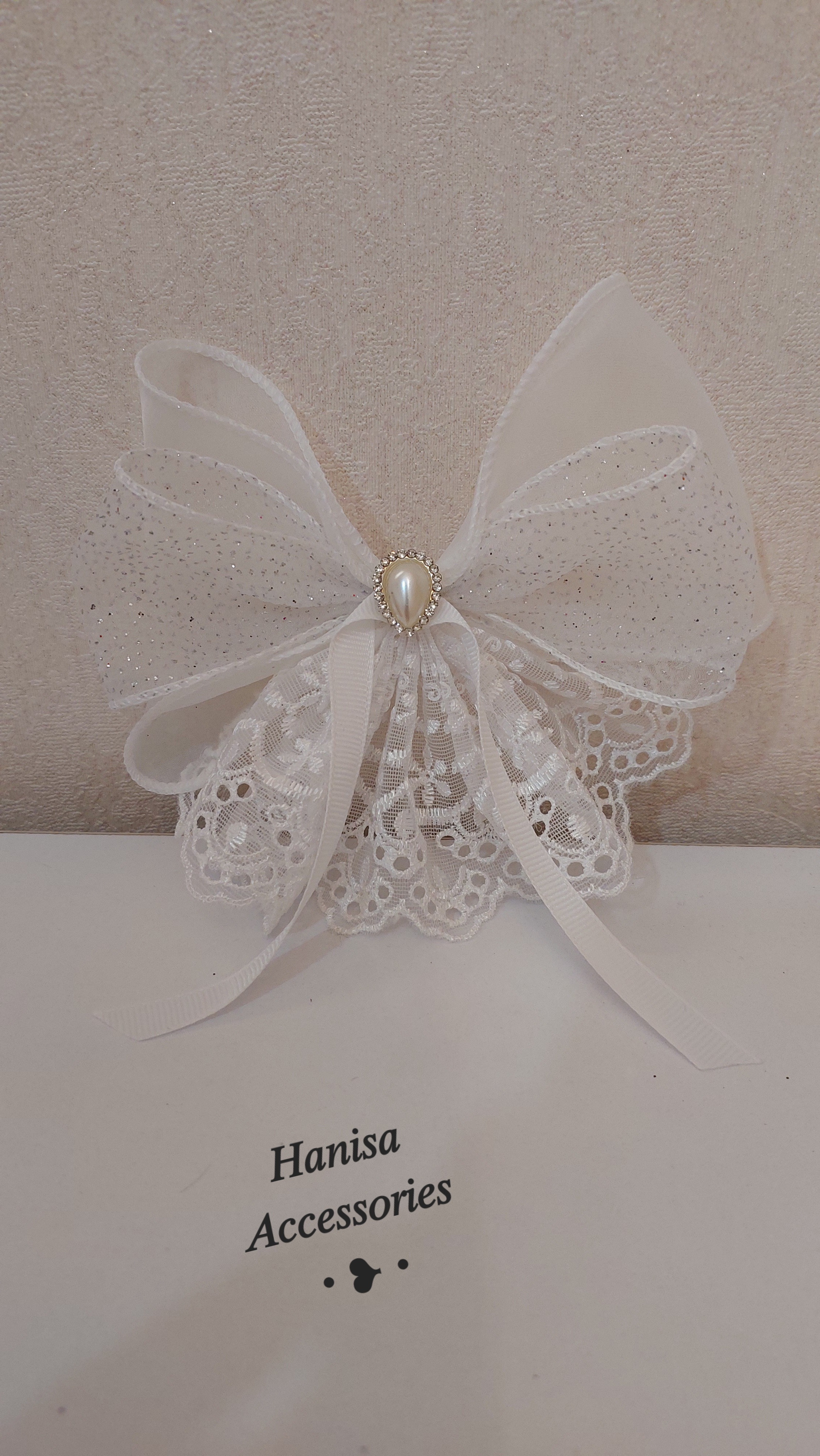 گلسر پاپیونی دانتل مروارید دار