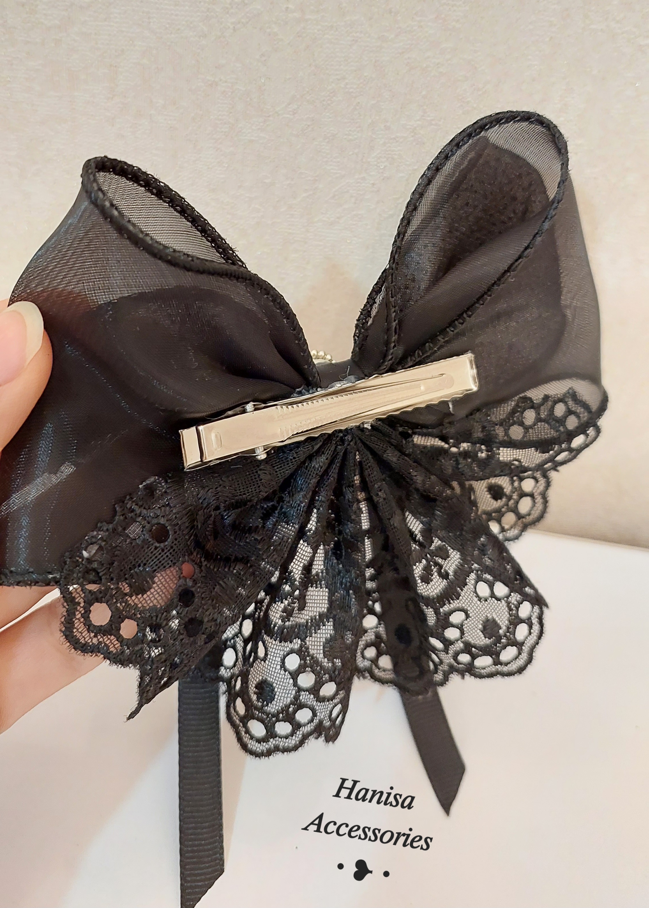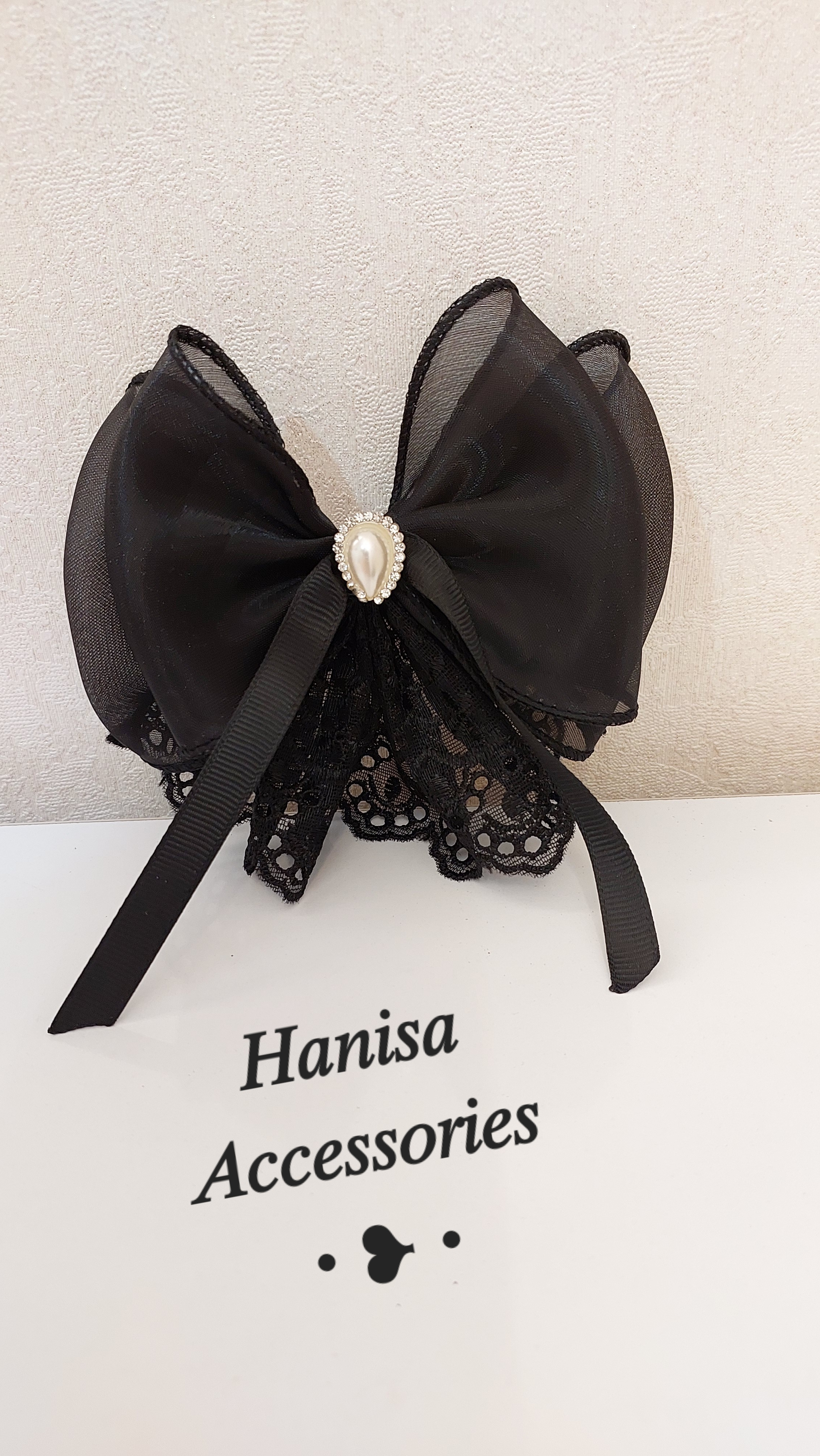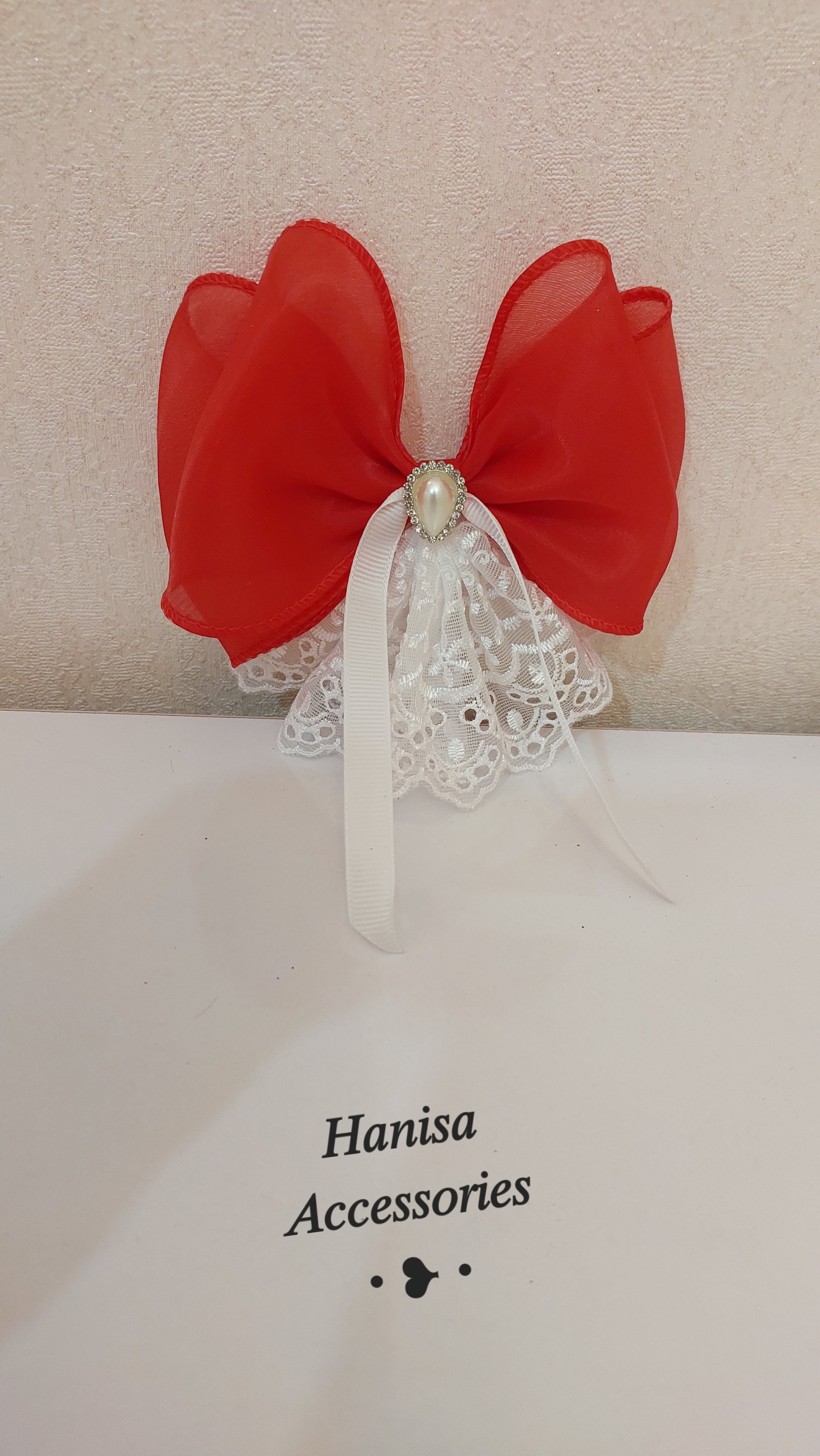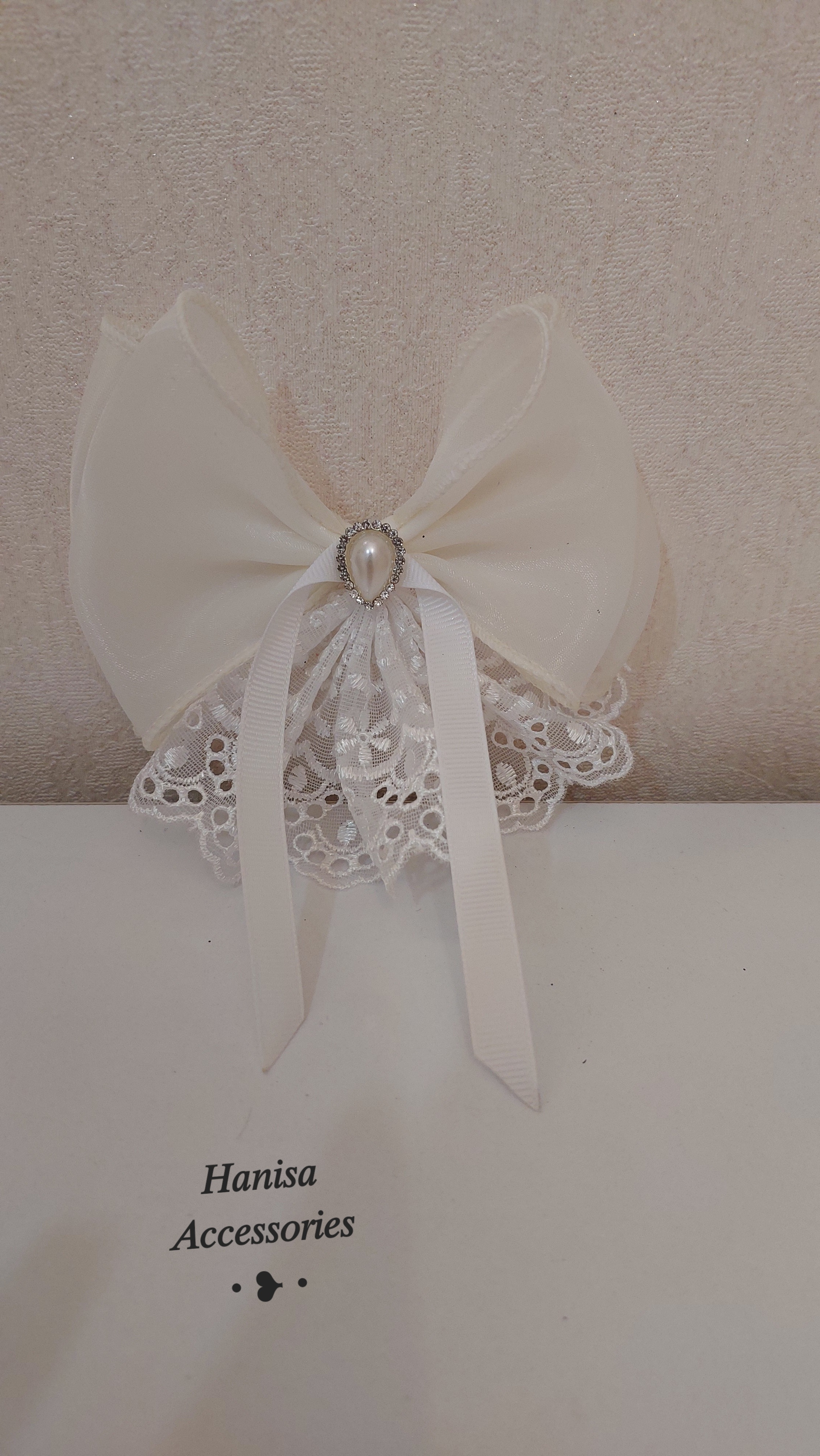 گلسر پاپیونی دانتل مروارید دار