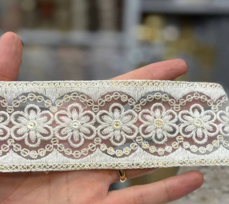 تل خامه دوزی زنانه کرم با گلدوزی طلایی ،ساده و خاص✨️