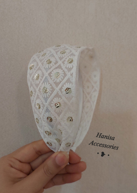 «این محصول شامل تل و هدبند ستشده با تور سفید و گلهای طلایی است؛ سبک، راحت و مناسب جشن و عکاسی.»