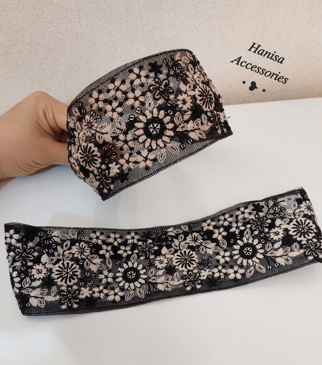 تل و هدبند دانتل گلدوزی مشکی کرم با دوخت تمیز و طرح فلورال برجسته، انتخابی باکیفیت برای ساخت تل، اکسسوری و لباس مجلسی است. ایستایی خوب و جزئیات دقیق، این مدل را به گزینهای کاربردی و لوکس تبدیل میکند.