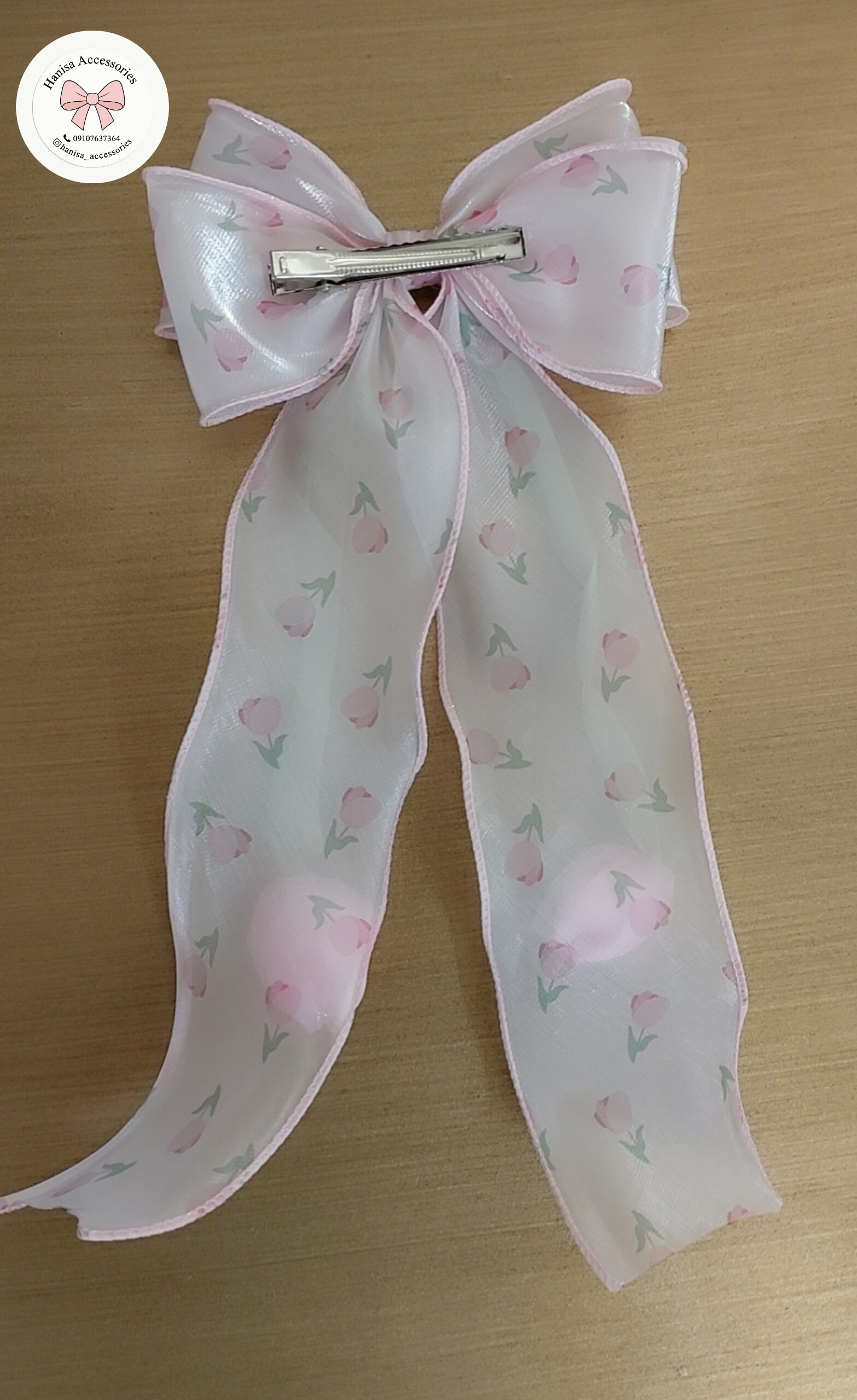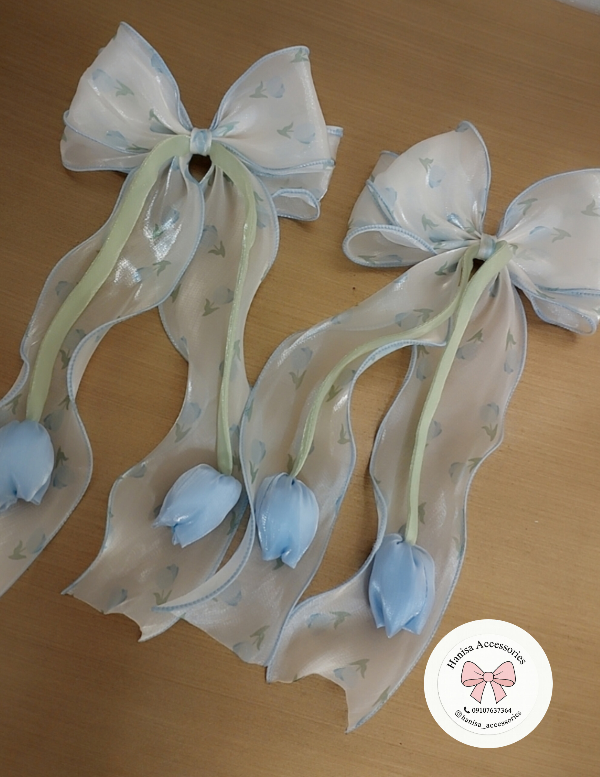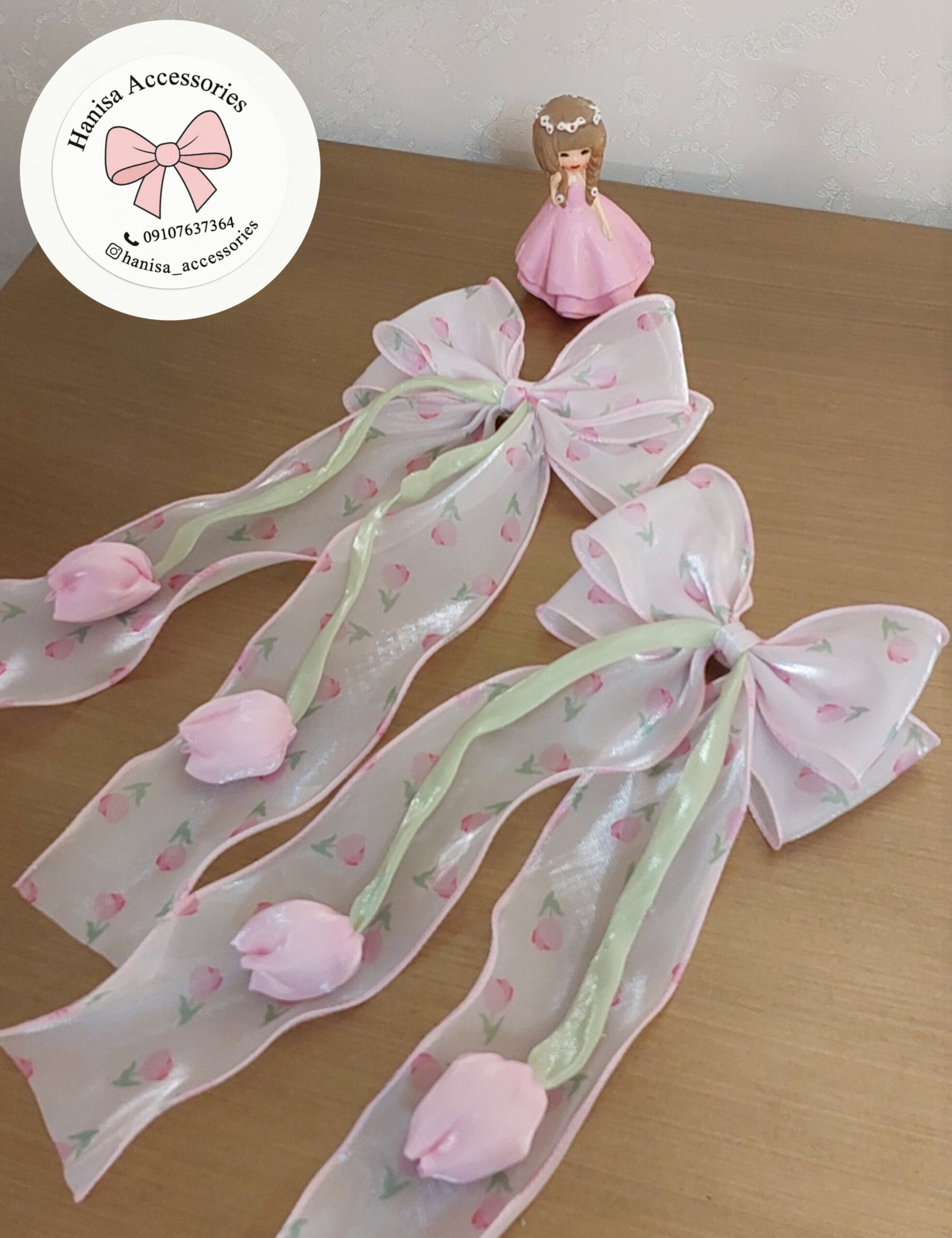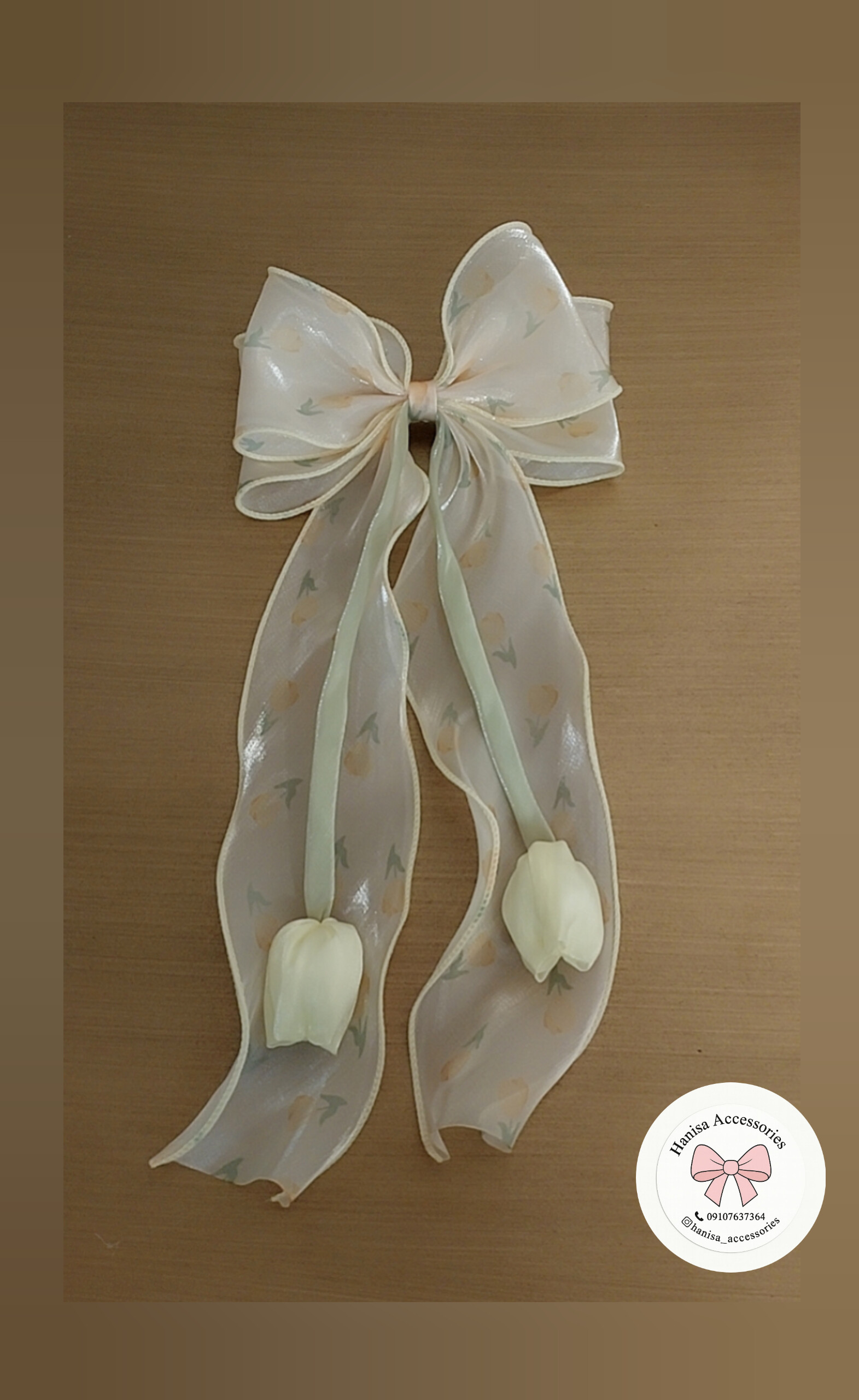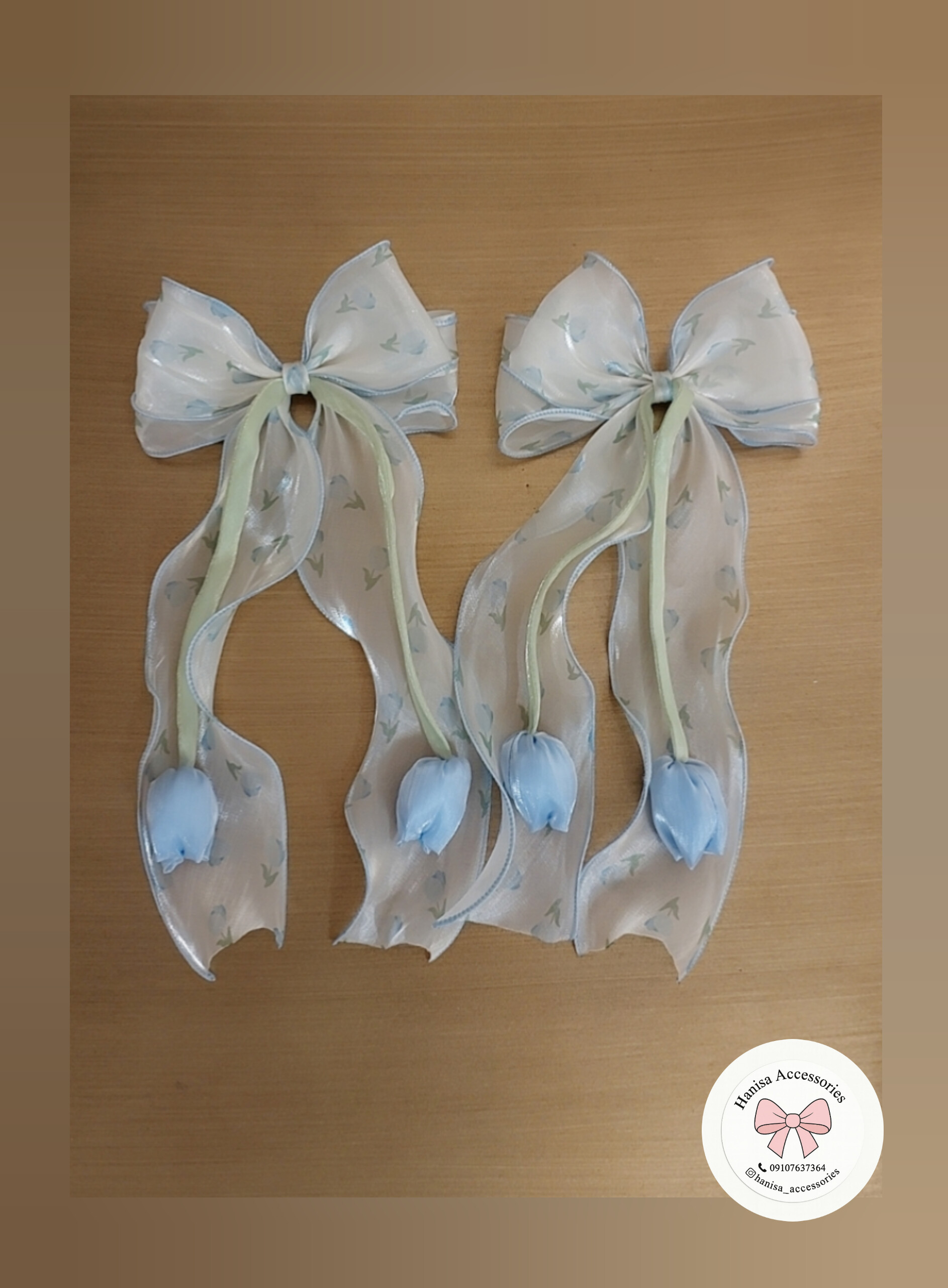 گلسر حریر طرحدار با آویز گل لاله، ترکیبی از شیکپوشی و ظرافت.