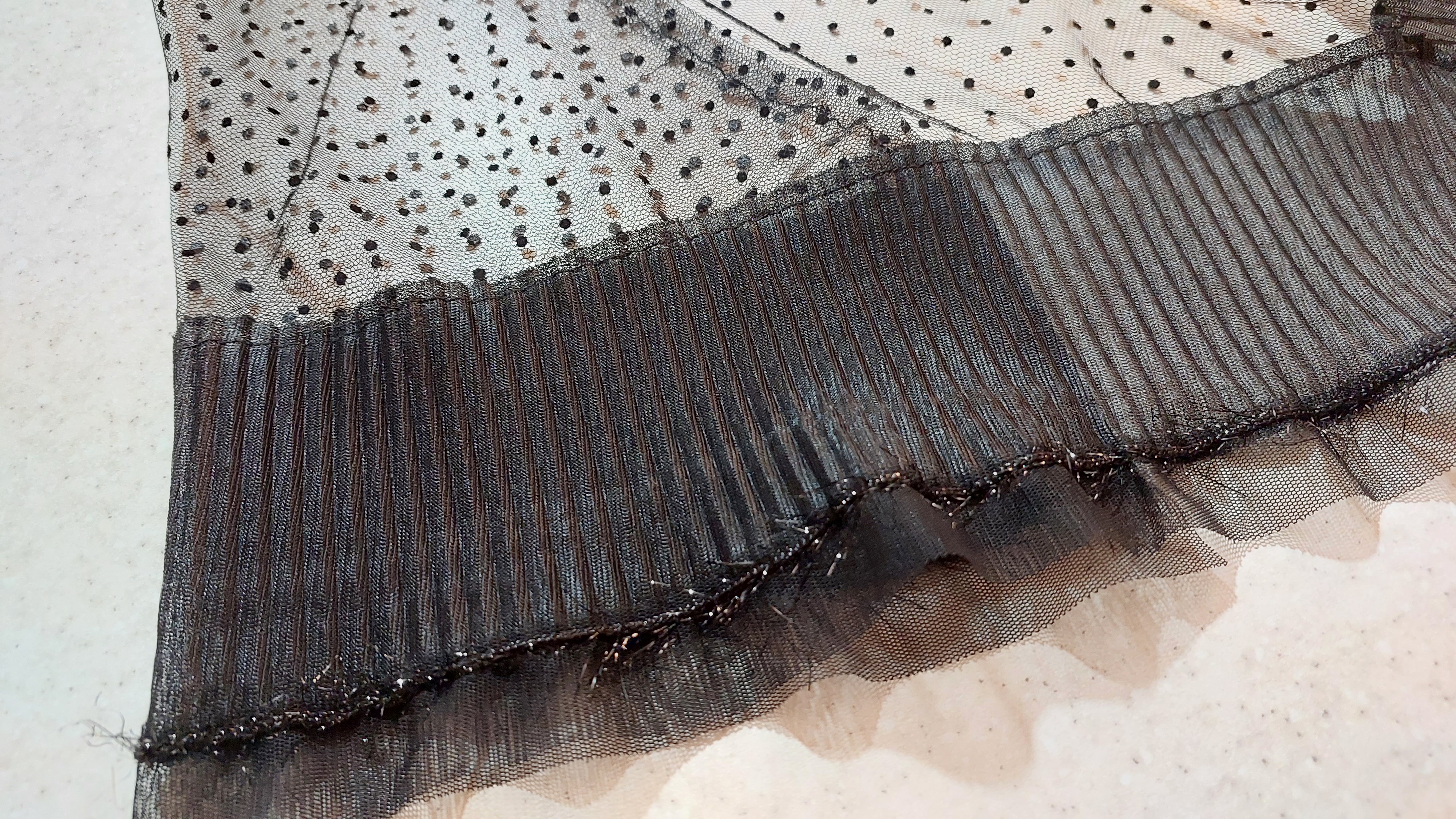 تل اسکارف مشکی توری با طرح خالخالی ظریف و لبههای دانتلدار، فوقالعاده شیک و مناسب برای استایلهای مجلسی و روزمرهست! ✨